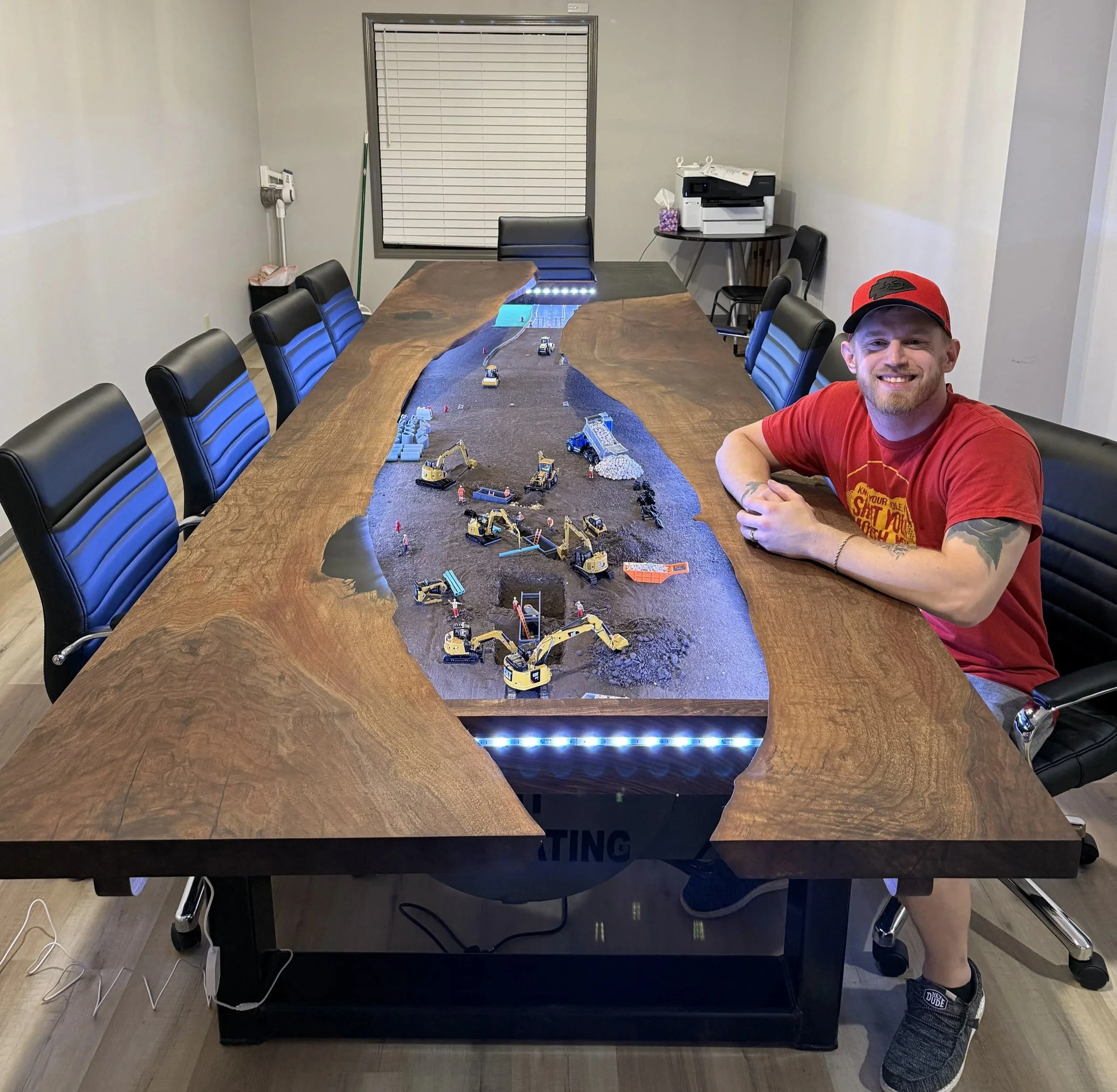 Built for a construction company in Topeka, this 14' x 4' conference table was designed to reflect the type of work they do while also serving as a practical meeting space.