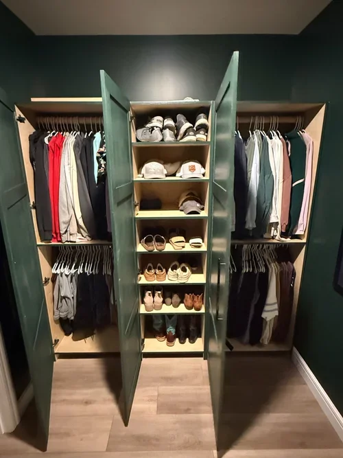 This closet lacked functional storage and needed a clean built-in solution that would fully utilize the available wall space. The goal was to create better organization without making the room feel crowded.